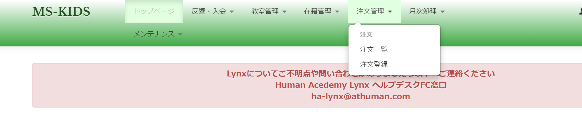 Lynxログイン>MS-KIDS>注文管理(注文登録)
