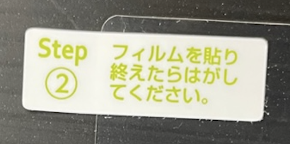 Step② 画面に保護シートを貼付した後に、こちらのシールのついたフィルムをはがしてください